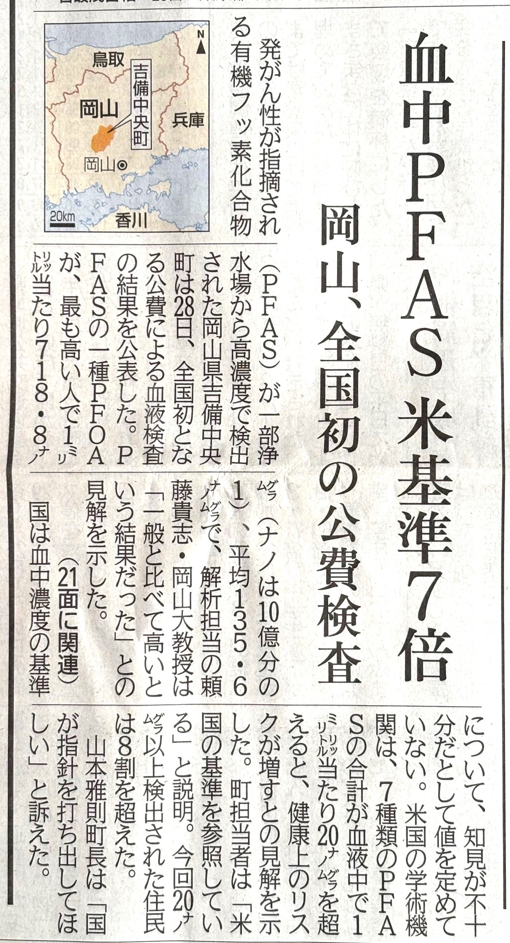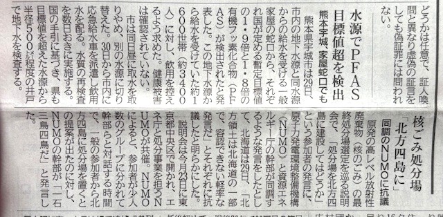 投稿日: 2025年1月30日2025年1月30日岡山_吉備中央町が血液検査結果を公表 2025/1/28 2025/1/29 琉球新報 2025/1/29 琉球新報 21面 熊本県宇城市でも、一般家屋の蛇口で目標値を超えるPFASを検出 2025/1/30 琉球新報 ▽シェアする▽